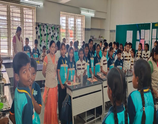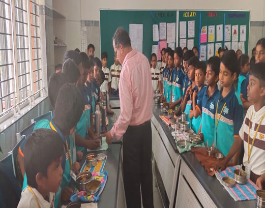 மாணவர்கள் பல்வேறு வகையான சிறு தானியங்கள் மற்றும் சிறுதானியத்தில் செய்த உணவுப் பொருட்களைக் காட்சிப்படுத்தினர்.