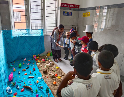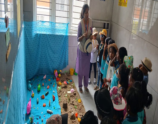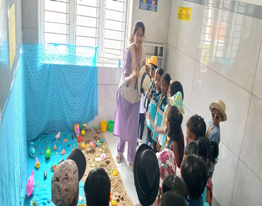 The children understood the concept by identifying and confidently naming beach objects, grasping singular and plural forms through practical experience, and learning to pronounce 'sh' words correctly. This exercise also enhanced their observation and vocabulary skills through a live display.
