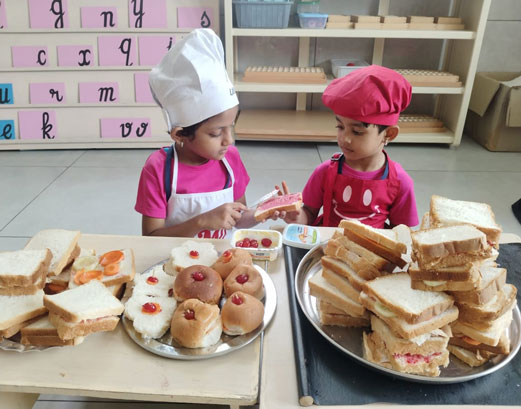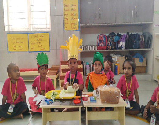 Our Montessori kids turned into little chefs and vegetable sellers today! They prepared colorful veggie sandwiches, learned the value of healthy food, and had loads of fun too! A day full of joy, creativity, and yummy learning!