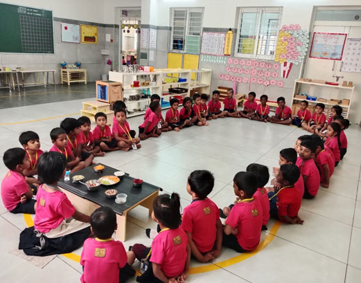 Content : Today, our little Montessori learners celebrated Sprouts Salad day with great enthusiasm. The tiny tots eagerly participated in preparing fresh and healthy sprouts salad. With their little hands, they explored the textures, colors, and taste of sprouts while learning the value of healthy eating. Teachers explained the power of sprouts and the importance of eating raw salads to stay strong and healthy. The little ones happily tasted and learned that healthy food is equal to the healthy body