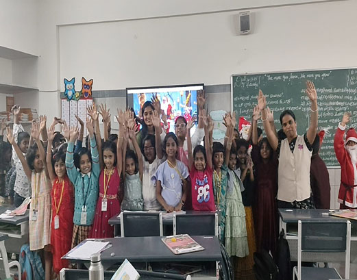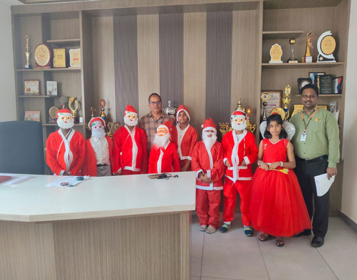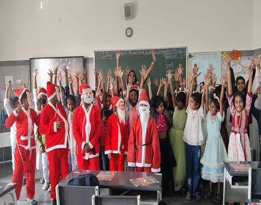 We celebrated Christmas across 3 to 5 category, with children dressing up as Santa Claus and fairies. The children were taught about the meaning of Christmas, and Santa Claus handed out erasers and pamphlets to them.