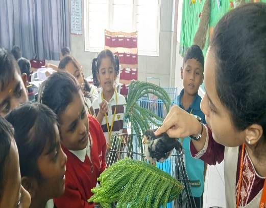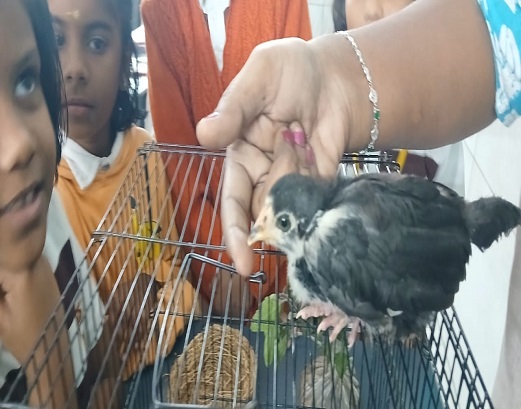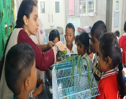Through an experiential GK activity, teachers created a simulated garden to introduce a real bird specimen. Students actively observed, identified, and discussed bird parts and their functions. Hands-on exploration enhanced curiosity, observation skills, and understanding, enabling learners to gain clear, practical knowledge of birds and their real-world characteristics and awareness.