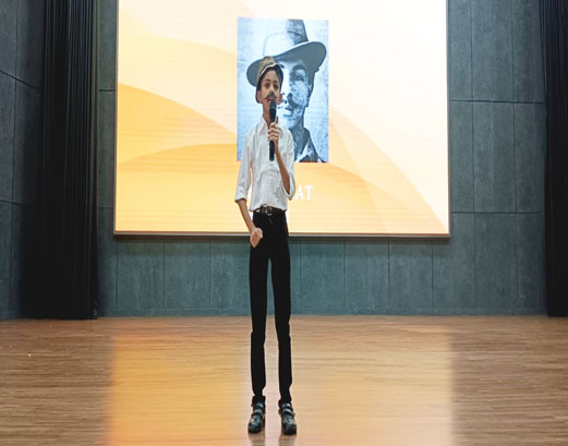 Students showcased their special talents through a patriotic speech, role-play by dressing up like Bhagat Singh and Lakshmi Sehgal, a vibrant instrumental performance using piano and melodica, and a fun-filled, enthusiastic skit highlighting the values of freedom, duty, and national pride.