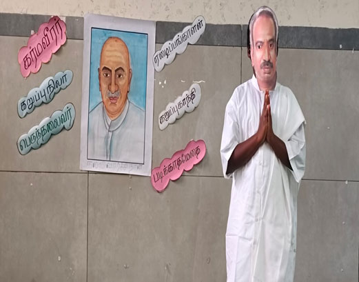 - காமராசர் ஆட்சி செய்த ஒன்பது ஆண்டுகளில் செய்த சாதனைகள் மற்றும் அவர்தம் கல்விக்கு ஆற்றிய அரும் தொண்டுகளைப் பற்றி மாணவர்கள் ஒவ்வொருவரும் விளக்கினார்கள்.