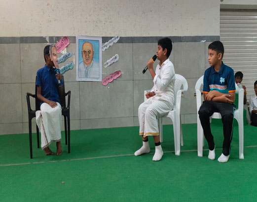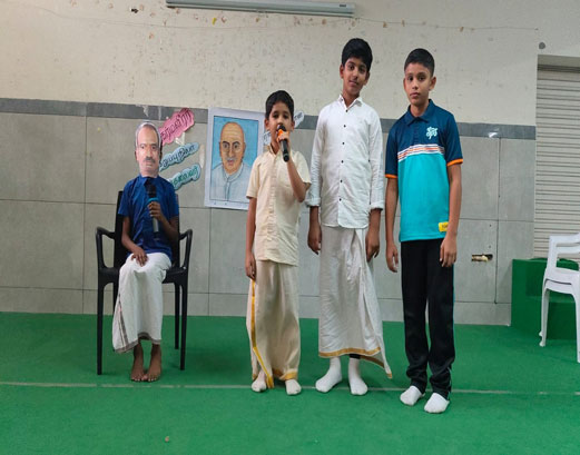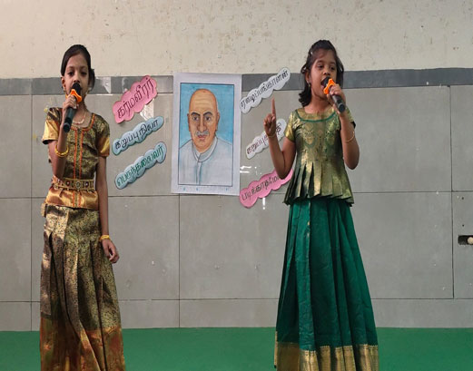 - மாணவர்கள் ஒவ்வொருவரும் காமராசரின் சிறப்புகளைப் பாடல்கள் மூலமாக வெளிப்படுத்தினர்.