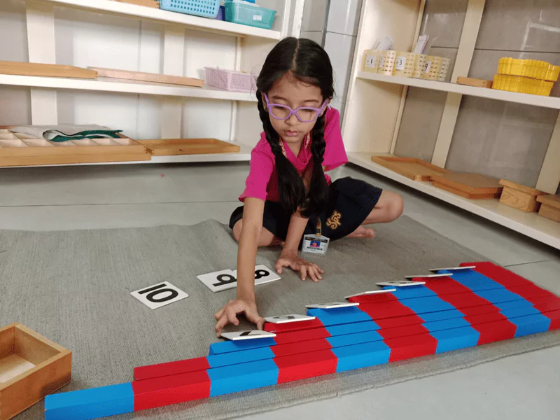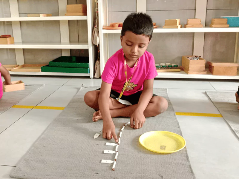 The Montessori math curriculum is one of the best examples of the unique beauty of Montessori materials. First, the Montessori practical life and sensorial activities give indirect preparations for math. Then the math materials continue to prepare the child for later learning. They use concrete materials to introduce abstract concepts and give a sequential understanding of mathematical concepts.