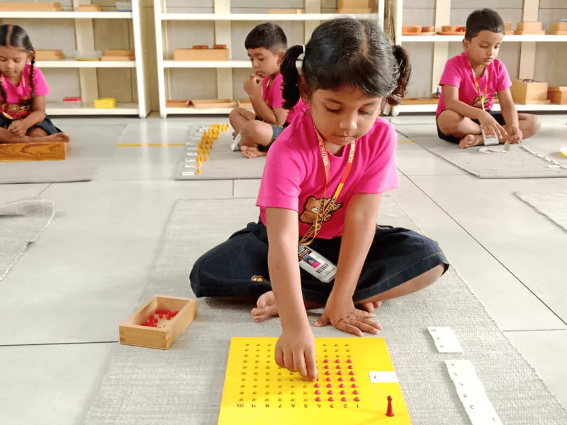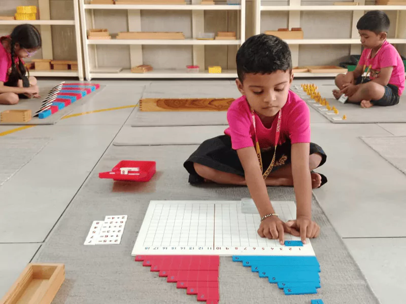 Much of the Montessori curriculum is based on giving children exposure to concrete materials first, then giving them incremental opportunities to work on more abstract concepts. This is no different when it comes to math.