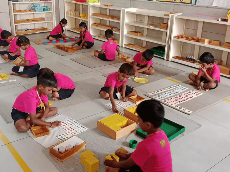 The acquisition of mathematical principles is seen as developing logically from concrete to abstract, and from simple to complex. Montessori math includes the development of concepts such as numeration, place value, fractions and the basic operations of addition, subtraction, multiplication and division using numbers up to 9999.