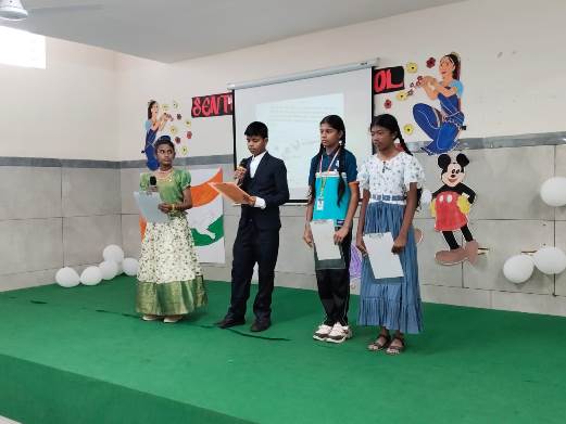 Different Classes take turns to present the morning assembly. Every child is given a chance to participate and share stories, songs, play, facts, skills etc. This enables the children to overcome their stage fear and increase their confidence.
