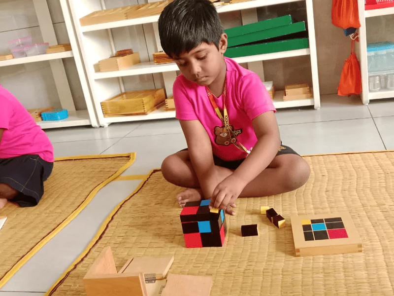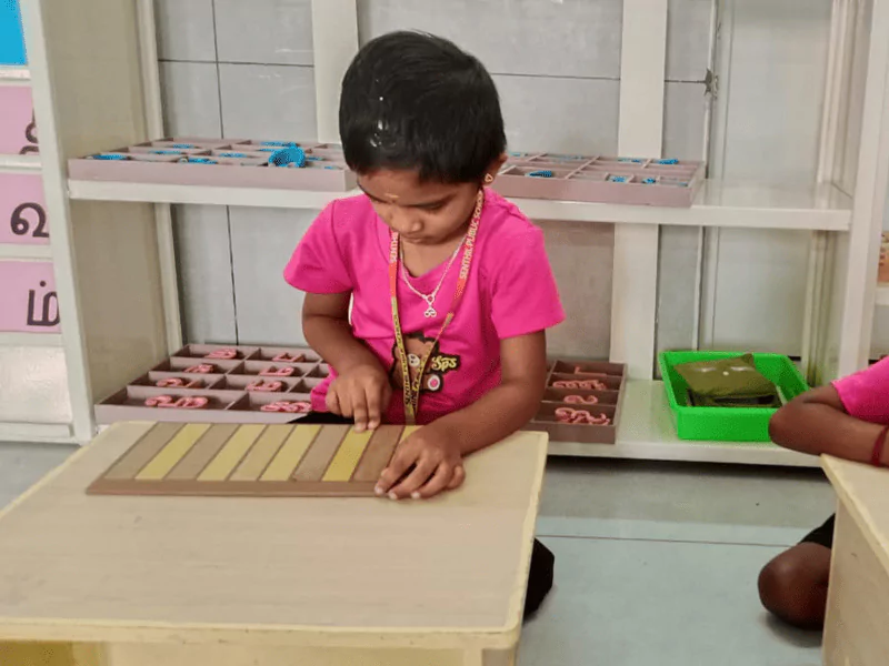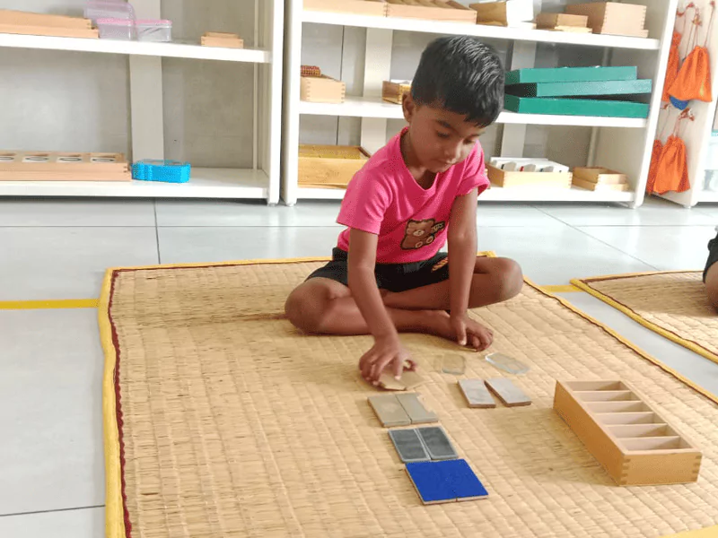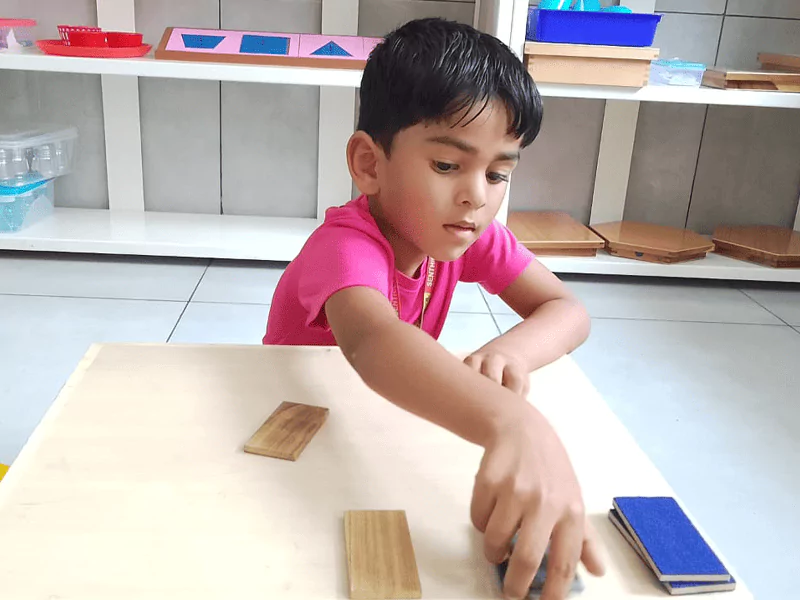 Through tactile lessons, a child learns to perceive the world through touch, developing the ability to discriminate between coarse and fine.
