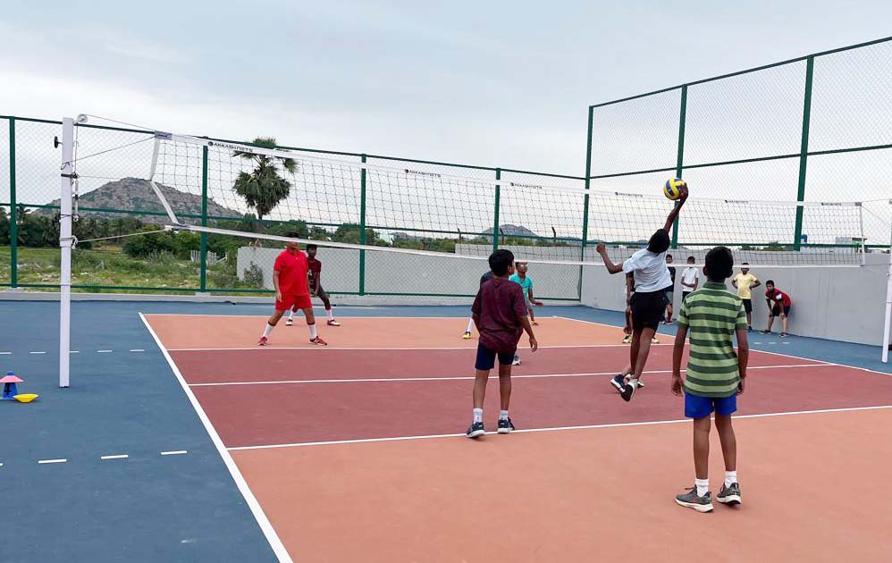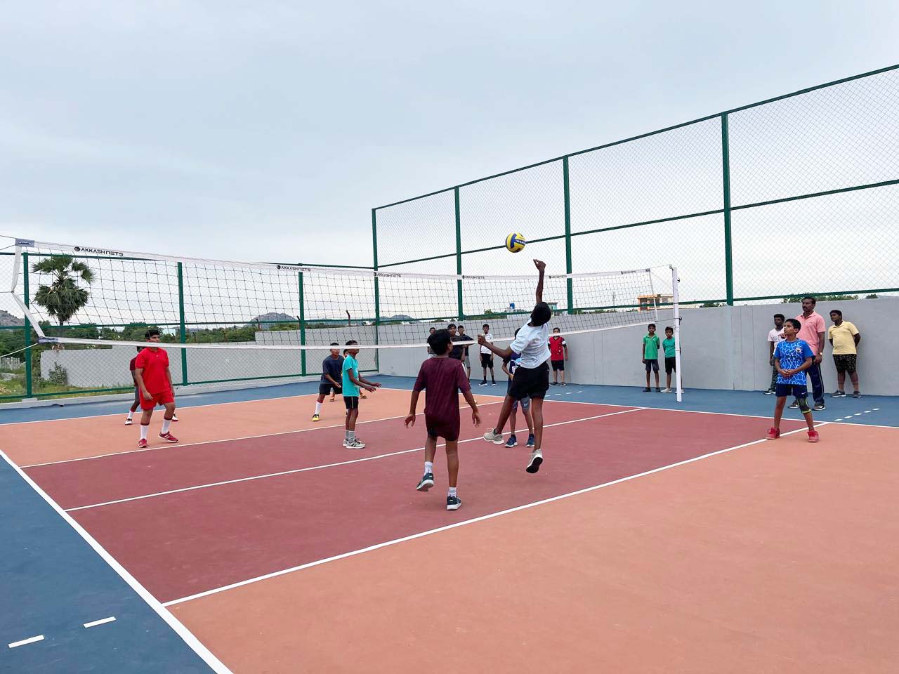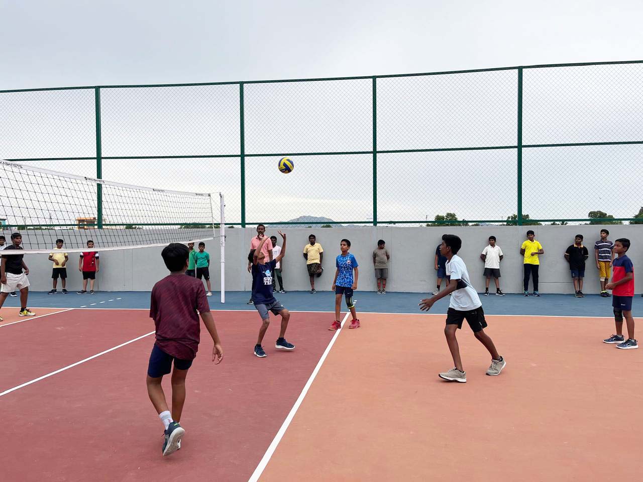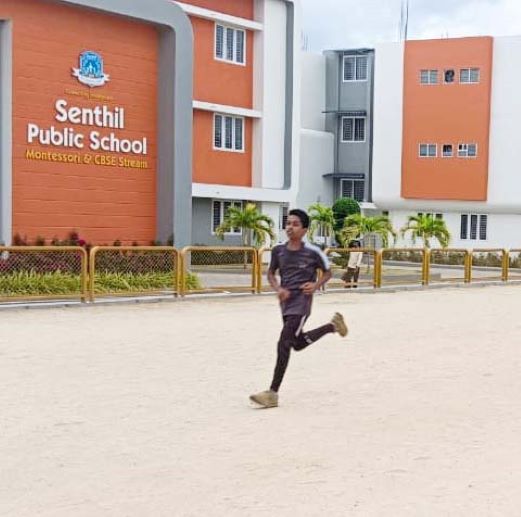 At Senthil Public School we believe in the holistic development of our students, and sports play a vital role in achieving this goal. We have spacious playgrounds that are equipped with state-of-art-facilities to train our students in a variety of games. Our Indoor games arena includes: shuttle courts, while our outdoor games facilities offer Volleyball court, a Football court and a Basketball court. We also have a running track with long jumps pits, discus, shot put, and javelin sectors. Our focus on sports is not only to promote physical fitness but also to develop important life skills such as teamwork, leadership, and sportsmanship. We have spacious playground to train our students in different games.